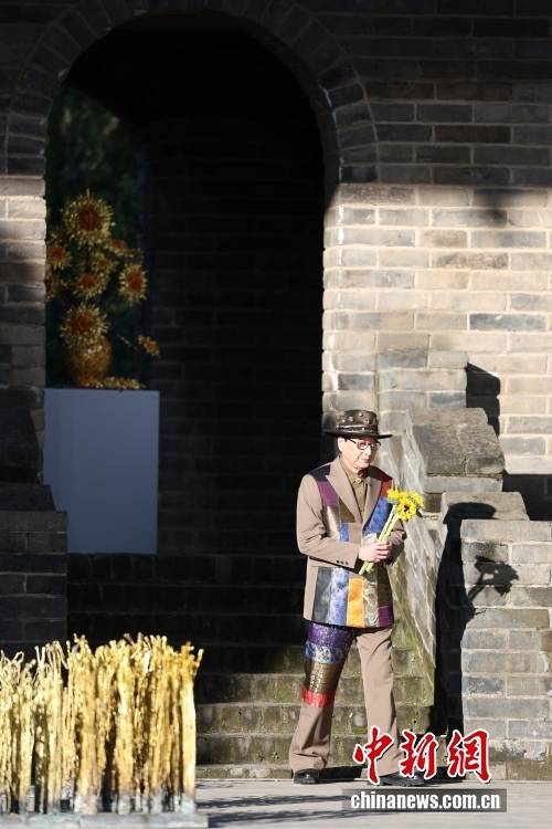 9月17日,SS2026北京时装周在北京古北水镇长城剧场闭幕。“匠师熔装”亮相闭幕大秀,大秀以“熔”为核心理念,暗含“包容”之意。81岁的熔现实主义艺术家、中国工艺美术大师朱炳仁首次跨界担任服装设计师,倾力打造出一场匠心与现代时尚完美融合的视觉盛宴。图为朱炳仁展示服装。中新社记者 田雨昊 摄