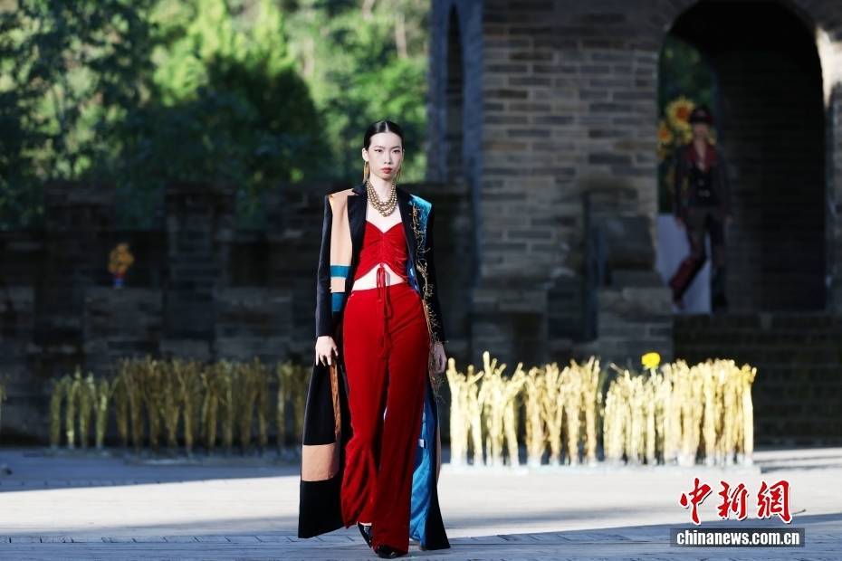 9月17日,SS2026北京时装周在北京古北水镇长城剧场闭幕。“匠师熔装”亮相闭幕大秀,大秀以“熔”为核心理念,暗含“包容”之意。81岁的熔现实主义艺术家、中国工艺美术大师朱炳仁首次跨界担任服装设计师,倾力打造出一场匠心与现代时尚完美融合的视觉盛宴。图为模特展示服装。中新社记者 田雨昊 摄