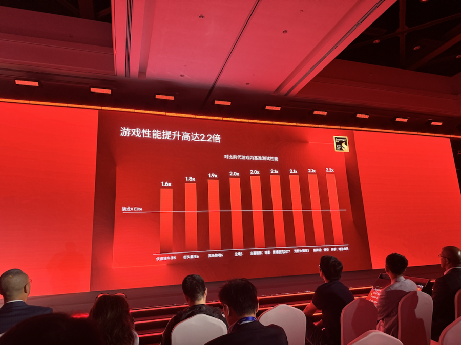 高通还分享了骁龙X2Elite系列在游戏方面的表现,不仅支持更多游戏,性能最高达到了上代的2.2倍。