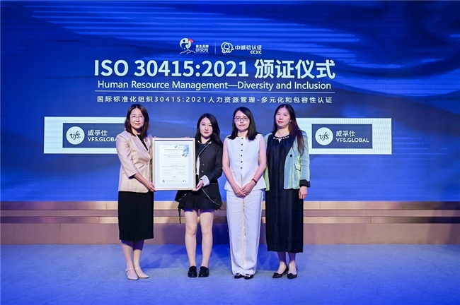 此外,在颁奖典礼上,威孚仕VFS Global中国公司由CCXC正式授予ISO30415:2021多元平等包容认证。该国际标准为组织建立人才多样性管理与评估体系提供了权威框架,尤其强调多样性对提升组织绩效、激发创新以及提高员工满意度的重要价值。此项认证的获得,标志着威孚仕VFS Global在将DEI原则与实践融入组织架构的进程中迈出了关键一步,具有重要的里程碑意义。